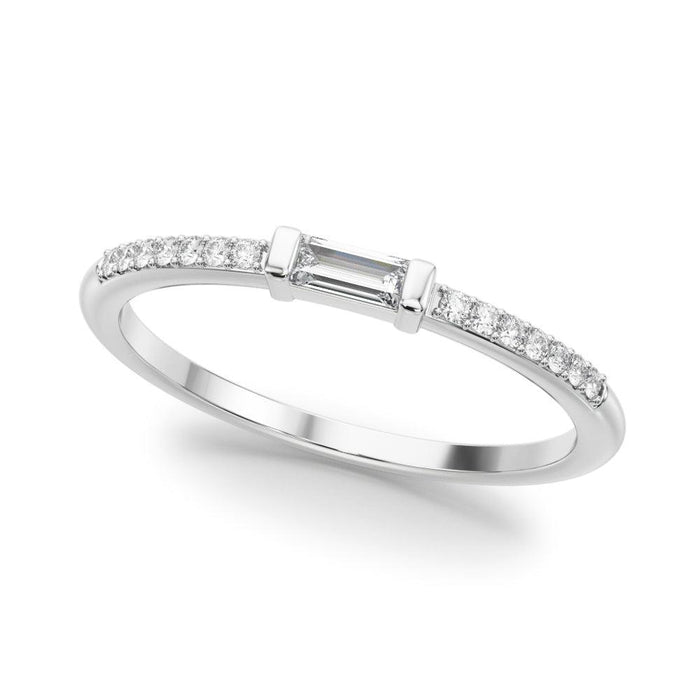 The Kaylee Band is the perfect choice for your special someone, which could be You. This promise ring features a stunning baguette center stone lined with round diamond accents on each side, all totaling 1/6ctw of lab-grown diamonds that will stay in your collection for years to come. With its timeless design, the Kaylee Band will never go out of style.