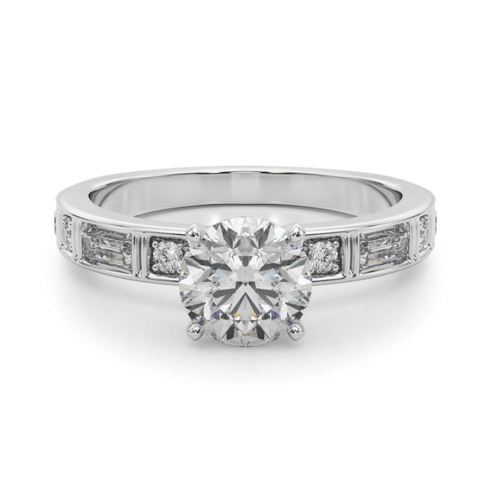 Introduce a touch of timeless elegance to your proposal with the Celine Setting. This beautiful engagement ring showcases a classic channel set style with straight baguettes and prong set rounds, resulting in a brilliant sparkle and 1/2Ctw of lab grown diamonds. Match it with the perfect wedding band fit when you buy them together.
