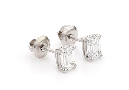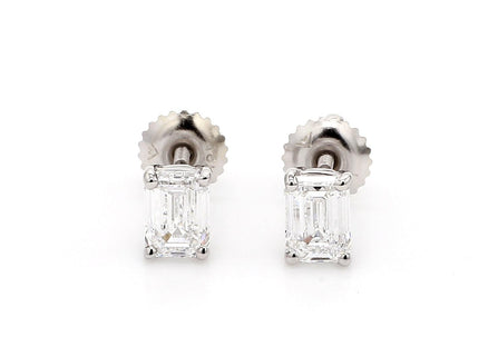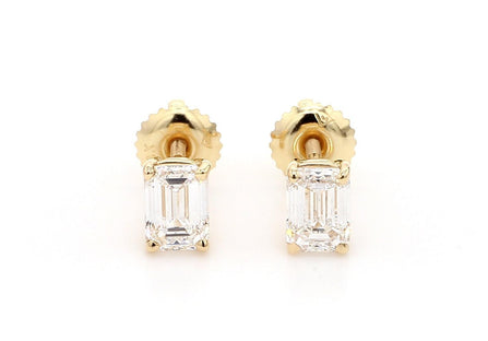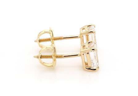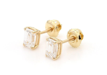 The elegant step cut facets of the emerald diamond add impact and glamour to any look. This dazzling, certified emerald-cut diamond stud earrings feature several parallel facets that create a shining, step-like appearance. They come in great value and amazing quality mounted in 18K white gold and yellow gold screw-back posts.