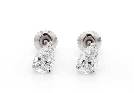 The pear shaped diamond, also known as the “teardrop diamond,” has soft elegant lines. This stunning pair of unique, pear shaped diamond stud earrings feature one rounded end and one sharply pointed end. They come in great value and amazing quality mounted in 18K white gold and yellow gold screw-back posts.