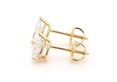 The slender shape of an oval diamond offers a unique twist on the traditional round shape. Oval diamond stud earrings have a classic, yet distinctive look that looks beautiful. They come in great value and amazing quality mounted in 18K white gold and yellow gold screw-back posts.