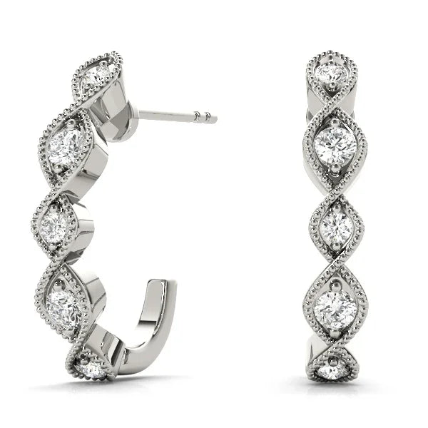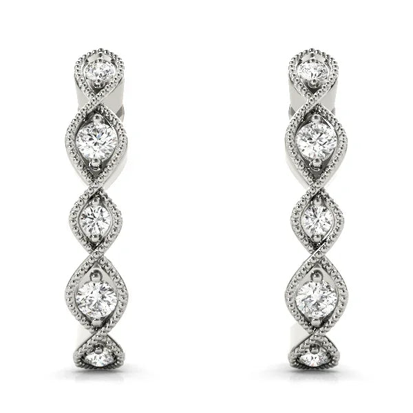 These elegant 1/4 total carat lab diamond earrings feature diamonds set in a delicate milgrain setting, crafted in your choice of 14 karat gold or sterling silver. Designed with secure push back posts, they offer both timeless sophistication and comfortable wear for any occasion.