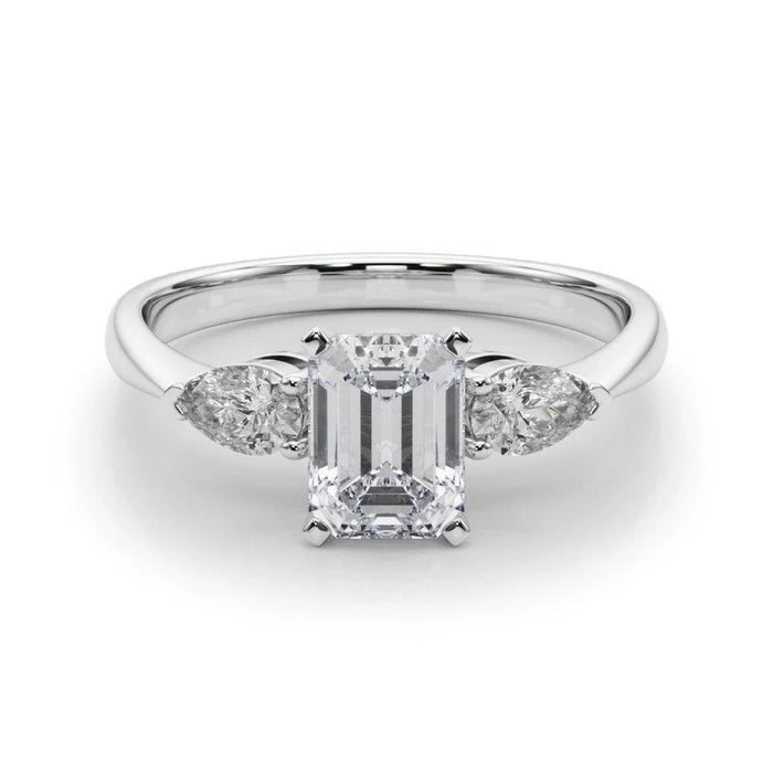 Be the belle of the ball with the Teena 3 Stone Setting! This remarkable display of opulence features two sparkling pear shaped side stones that combine for a total weight of 3/8 carats, with F-G color and VS-SI clarity guaranteed to dazzle. Shine on!