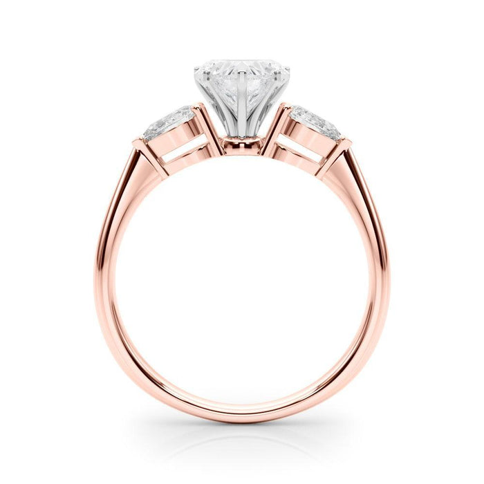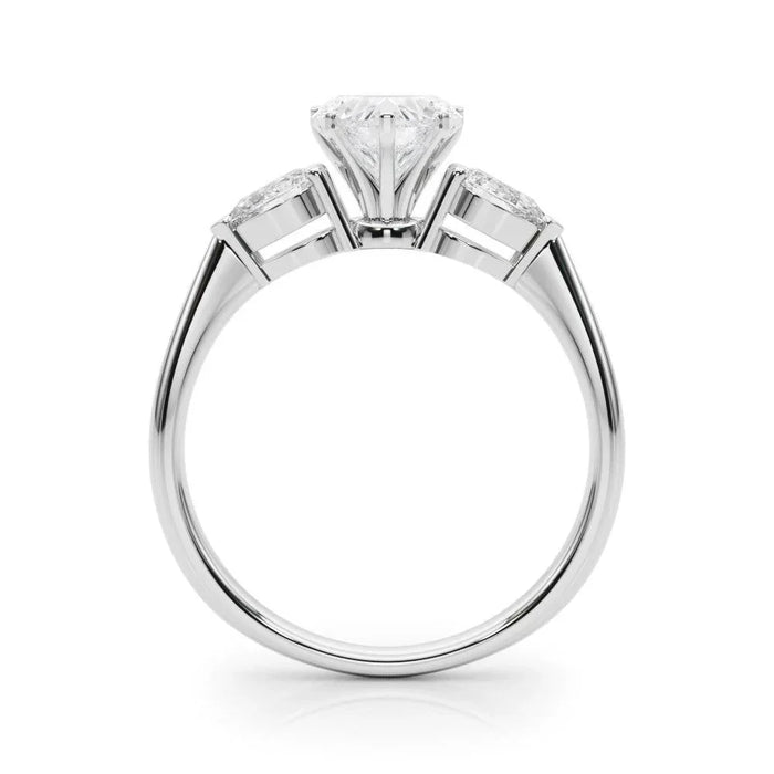 Check out this Teena 3 Stone Setting for the perfect way to show how much you care! Crafted in precious gold or platinum and featuring two captivating pear side stones (3/8 carat total weight) of F-G color and VS-SI clarity, with a stunning heart-shaped center – this setting is truly one of a kind. Wanna do something special? Go for the Teena 3 Stone Setting!