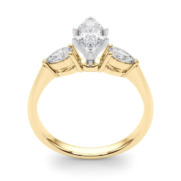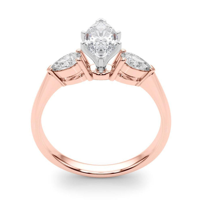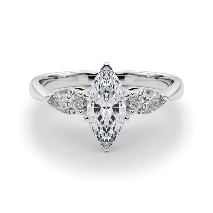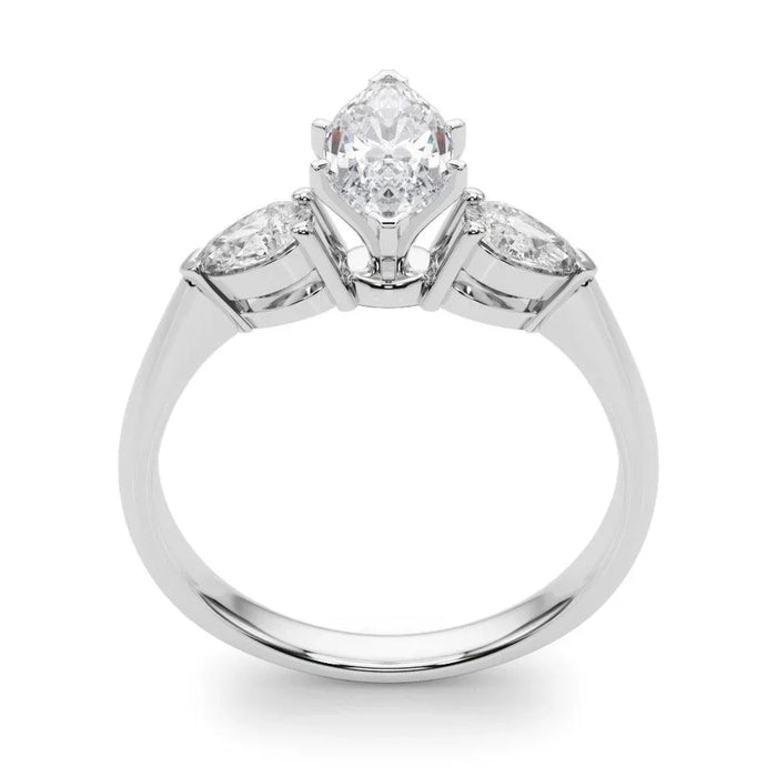 Give your jewelry collection an extra sparkle with Teena 3 Stone Setting! Featuring a marquise lab diamond center, paired with two shimmery pear-shaped lab diamonds sides, all set in either gold or platinum. It's perfect for adding a bit of glam to your look!