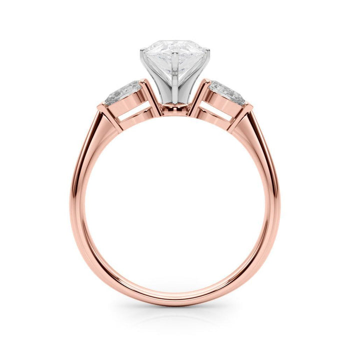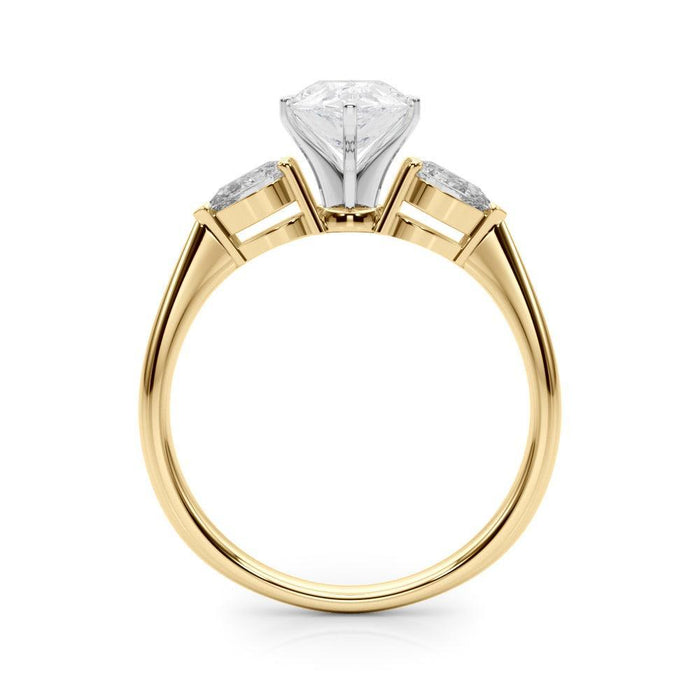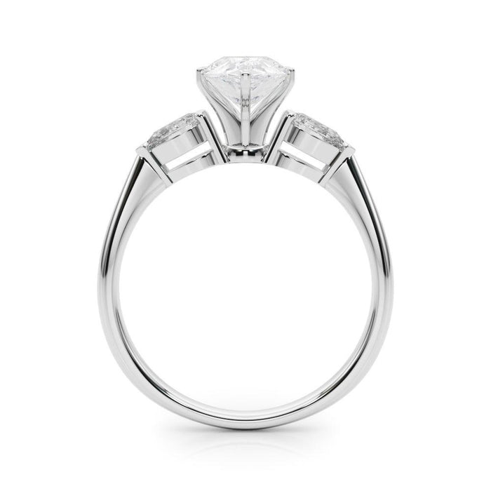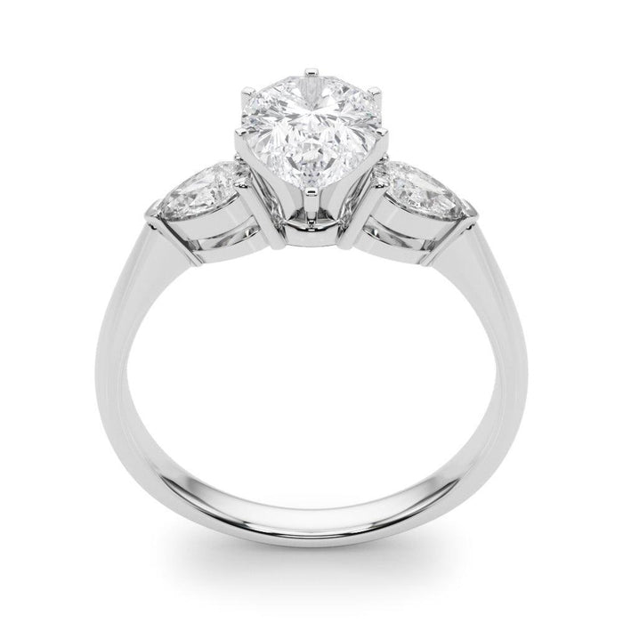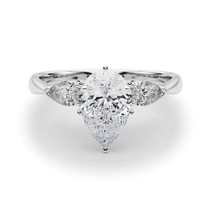 Make an unforgettable statement with Teena's 3 Stone Setting! Showcasing a show stopping pear-shaped center and pear sides, this beautiful ring is crafted in gold or platinum for a timeless look. Make an impact - own Teena's 3 Stone Setting today!