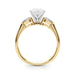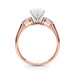 Depending on the choice of your center lab created diamond, the setting diamond weight will adjust proportionately to keep the same desired style. Smaller diamonds or different shaped diamonds will cause the prong count to adjust or the whole center will adjust to the best fit for that loose lab diamond you chose.