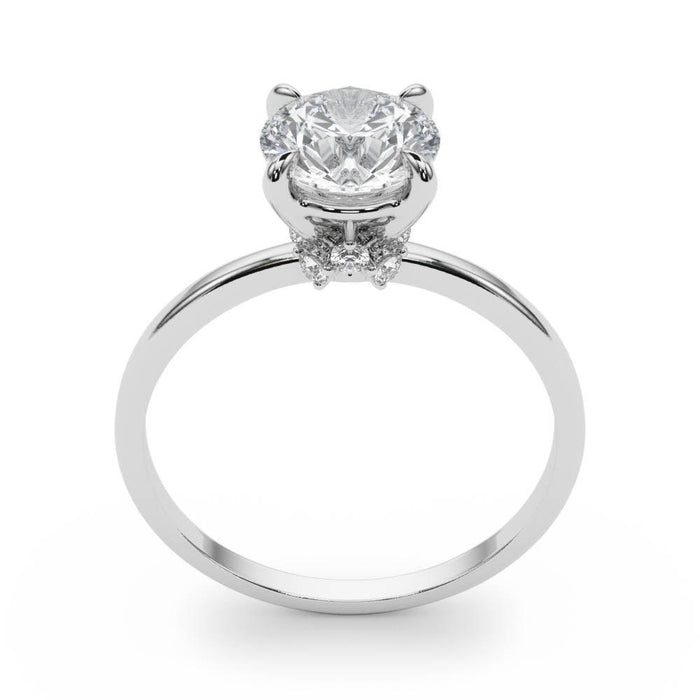 The Alberta hidden diamond surprise is an elegant engagement ring crafted with a timeless 4-prong, claw design. Perfect for a curved style wedding band, this 1/8Ctw lab grown diamond accents highlights the center 1.10 carat lab created diamond. It's the perfect ring to make a timeless symbol of everlasting love shine.