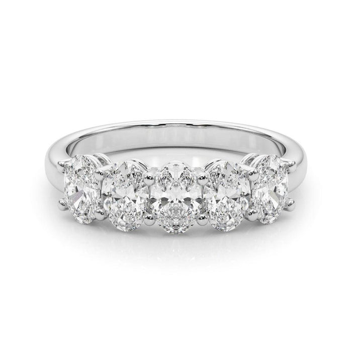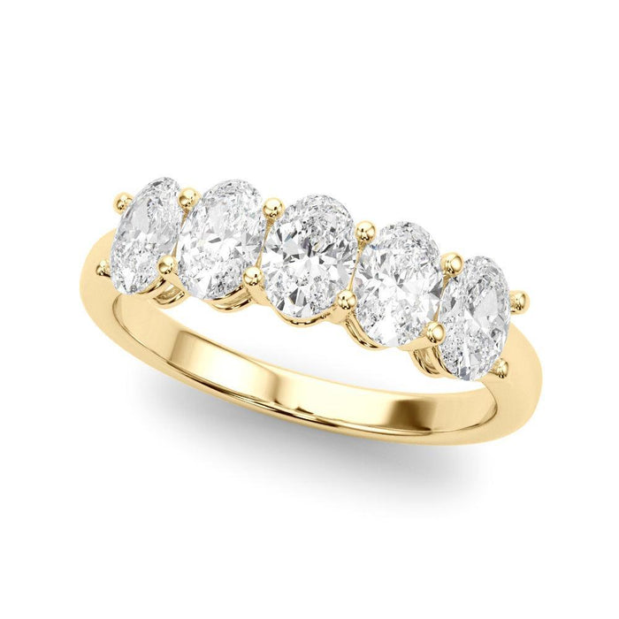 This stunning Amies Band in 14k gold showcases five lab-grown diamond ovals. The diamonds of F-G color and VS-SI clarity are of the highest quality and crafted into an eye-catching design. Perfect for special occasions or everyday wear.