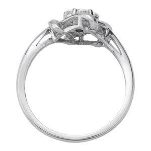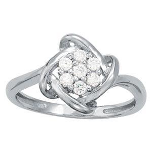 Be an unforgettable sensation with this Autumn Ring! Featuring 1/5 carats of lab diamonds in F-G color and VS-SI clarity, this love knot band will add a touch of sparkle to your favorite outfit. Climb to the heights of style with this bold and daring ring!