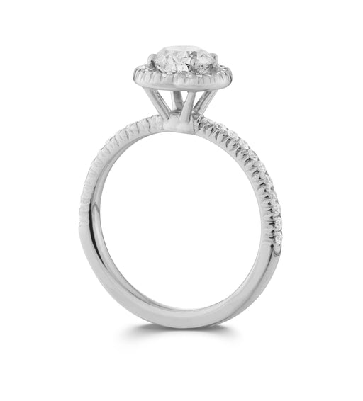 Traditional and charming, this look showcases shimmering white lab grown diamonds in a halo style setting. This halo style engagement features a gold or platinum shank accented with 1/3 carat total weight of lab grown diamonds to compliment the 1.0 carat round diamond of either G VS or I VS character selected. Center lab created diamond will come with an IGI certificate.