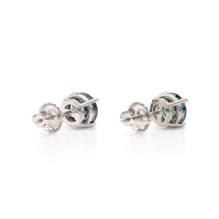 Simple and classic these blue lab grown diamond solitaire stud earrings, radiate. The solitaires are set in a four prong basket style 14K gold post setting with screw back closures. These beautiful earrings can stand alone or have an earring jacket to dress them up, extremely versatile and fit into any wardrobe and complement any occasion.
