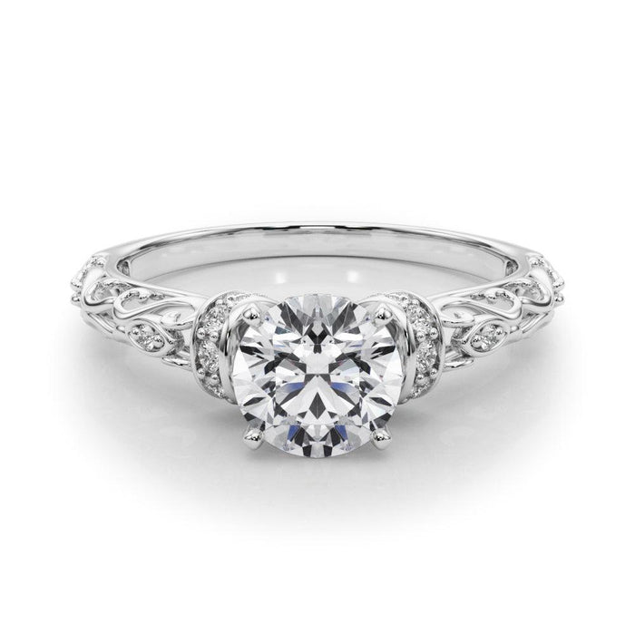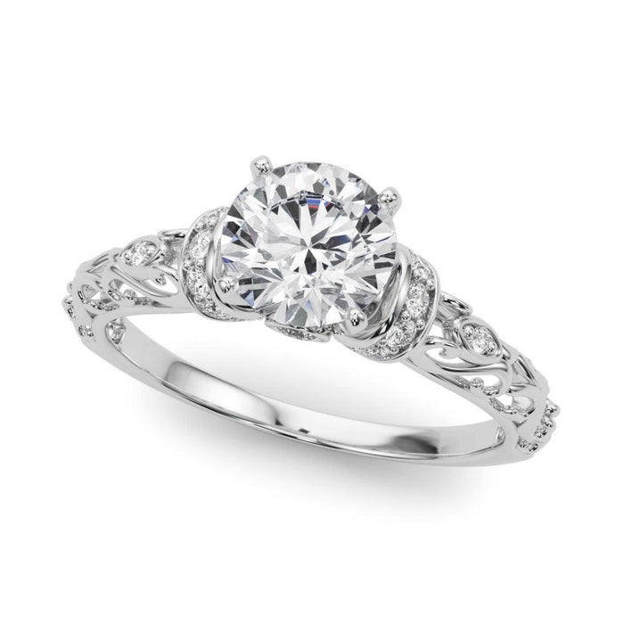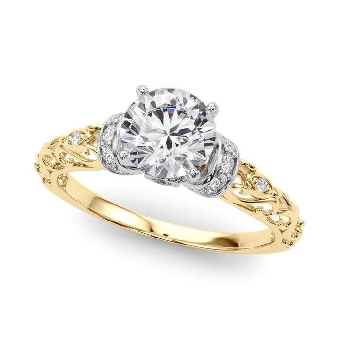 Show your commitment with the Brooke Setting ring. This vintage-inspired ring features 1/10ctw lab grown diamonds and ribbons and filigree for an elegant look. It comes in two-tone or solid metal options, so you can find the one that best expresses your love.
