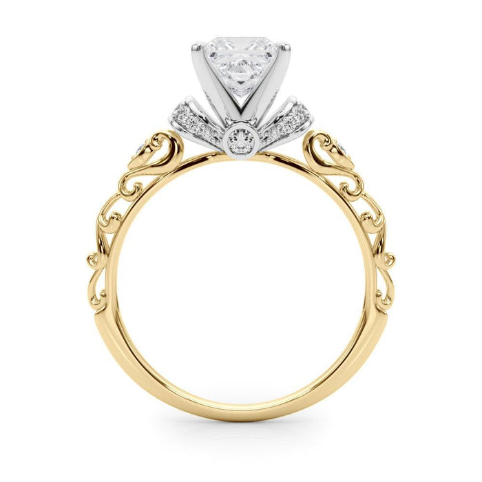 Show your commitment with the Brooke Setting ring. This vintage-inspired ring features 1/10ctw lab grown diamonds and ribbons and filigree for an elegant look. It comes in two-tone or solid metal options, so you can find the one that best expresses your love.