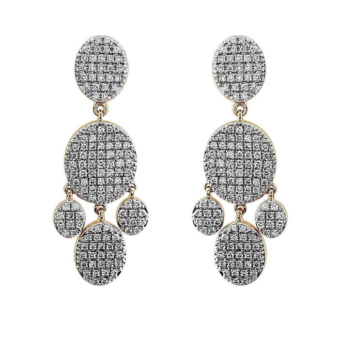 Indulge in luxury with our Diamond Chandelier Earrings, featuring stunningly clustered diamonds on disks for a total diamond carat weight of 1 3/4. Available in sterling silver or gold over silver, our lab-grown diamonds shine bright with a G-H color and VS-SI clarity. Elevate your style and make a statement with these exquisite earrings.