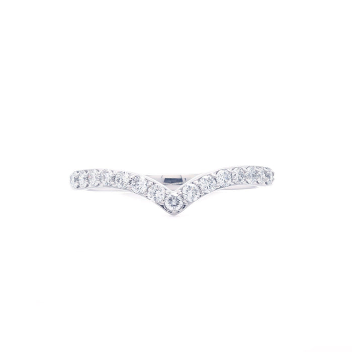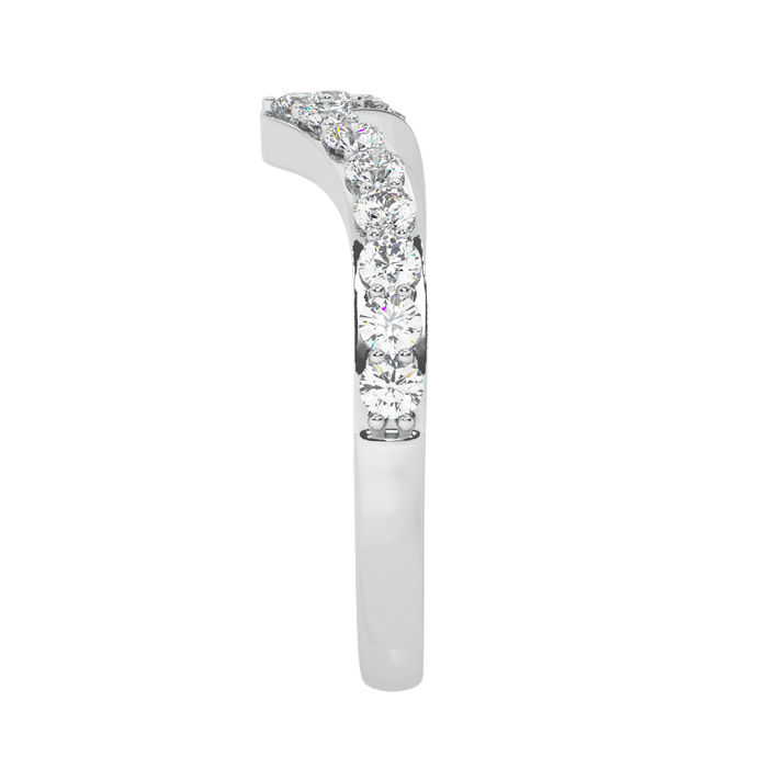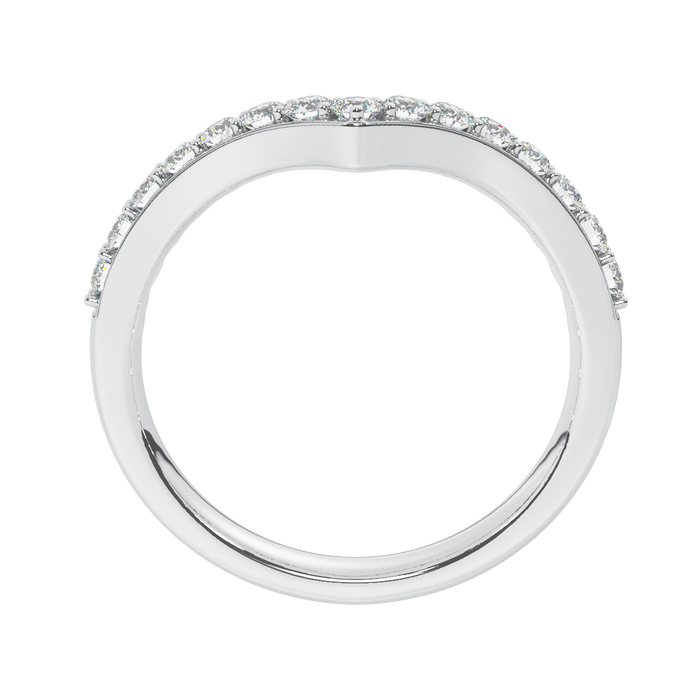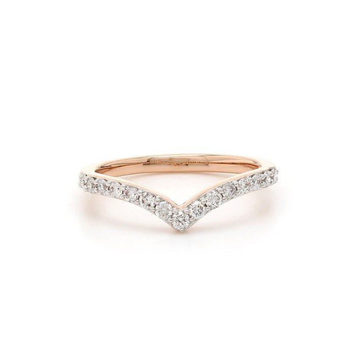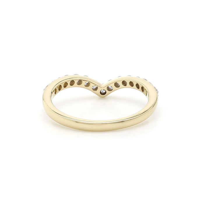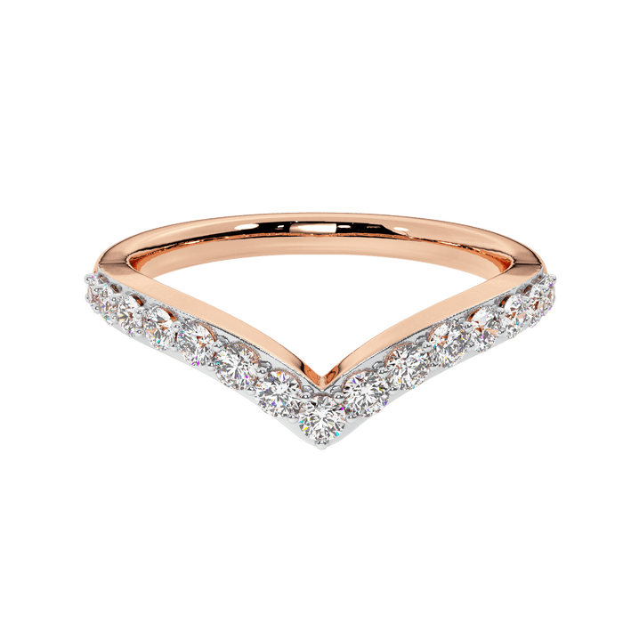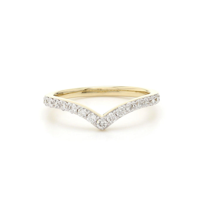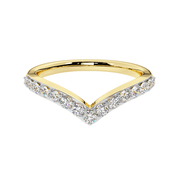 Stunning in 14K gold, glittering round lab grown diamonds totaling 1/3 carat are prong set along a chevron style band. This gently curved chevron design shimmers with F-G, VS-SI lab diamonds. Polished to a brilliant shine and a bit of flare, this ring is perfect for stacking with other rings to create a personal look.