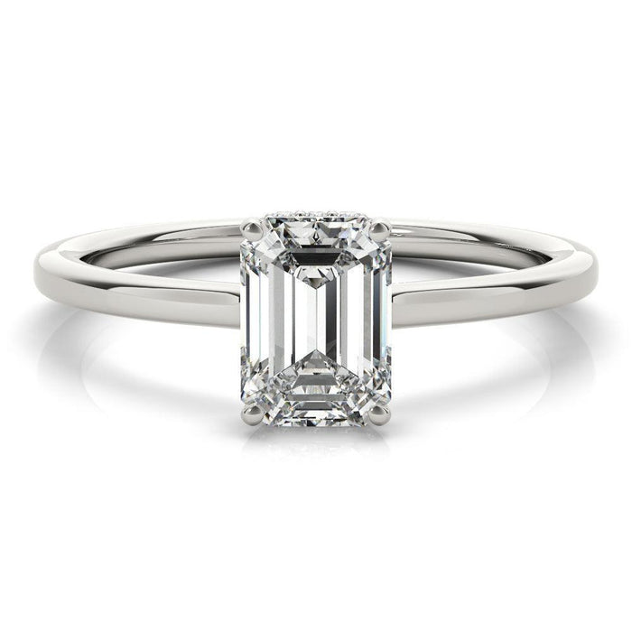 This stunning Christina 1 1/10 carat lab grown emerald diamond in E-G \ VS-SI color/clarity features 1/8Ct. T.W lab-grown diamond accents in a hidden halo for a beautiful, timeless brilliance and sparkle. Expertly crafted to last for generations, this engagement ring is the perfect way to add an extra touch to this special occasion.