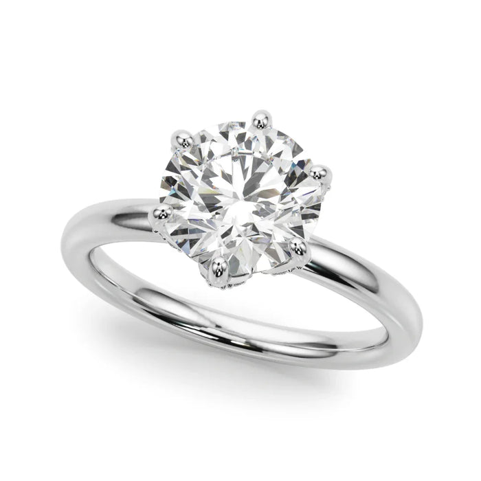Elevate your diamond with our exquisite Crown Solitaire Setting. This elegant design features a delicate 1/8ctw petal-style crown that perfectly showcases your center round diamond. The simple yet sophisticated solitaire style creates a timeless engagement ring that draws all attention to your precious stone. Make your proposal unforgettable with this stunning setting that transforms your diamond into a true statement piece.