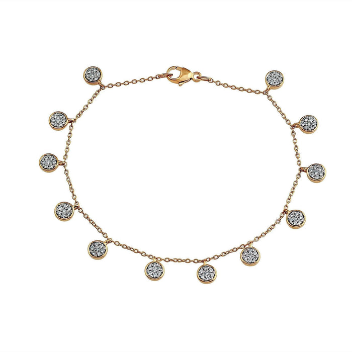 Delicate and elegant, the Dangle Station Bracelet in sterling silver or gold over silver features simple disks that dangle from a delicate chain. The lobster clasp ensures security while the stations of high-quality G-H diamonds add a touch of sparkle. With VS-SI clarity, this 7-inch bracelet is truly eye-catching.