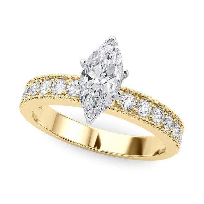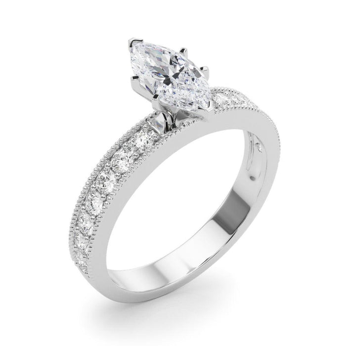 • Marquise diamonds are harder to come by in both mined and lab grown diamond shapes. They give a larger appearance and this shape in particular looks so flattering on hands of all sizes.