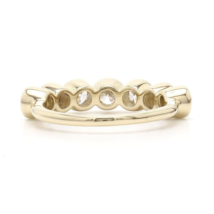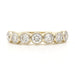 A simple and stylish ring that can be worn alone or stacked together to express your style, your family and your personality. Seven bezel set 1 1/2 carat total weight of lab-grown I-J VS-SI white diamonds, sculpted in 14K yellow gold.