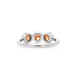 A contemporary choice for a beautiful three stone bezel ring. Sculpted in 14K white gold, this design features a trio of bezel set lab grown orange colored diamonds. Buffed to a brilliant luster, this artful look is a dazzling anytime choice.