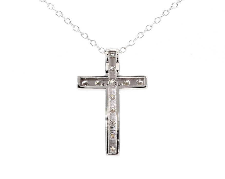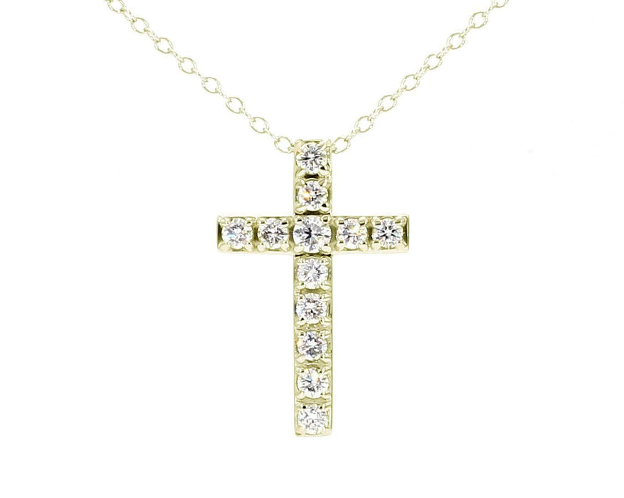 Simple yet striking, this diamond cross is beautiful. Fashioned in 14K gold, this traditional cross is completely outlined with a glistening array of shimmering diamonds. Radiant with 1/2 carat total weight of H-I, VS-SI diamonds and a bright polished shine, this cross suspends along a 16-inch chain that has a two-inch extension and secures with a lobster clasp.