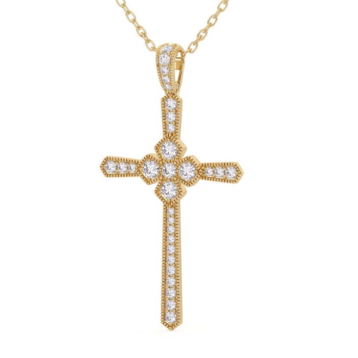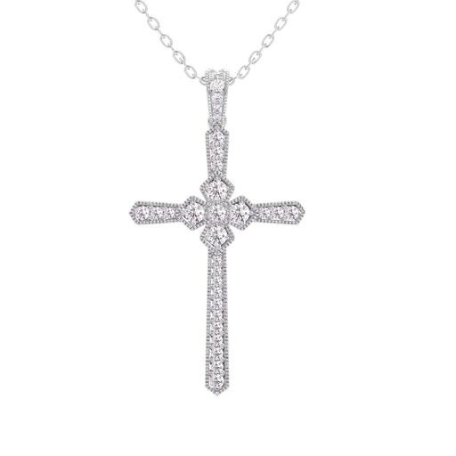 This Cross pendant adds a special sparkle to your look - featuring 1/2Ctw of lab-created diamonds set in 14K gold milgrain style. Perfect for the special occasion - make your statement and light up the room!