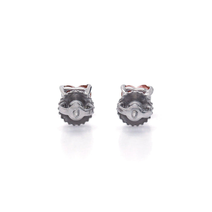 Make a wonderful impression with these beautiful heart stud earrings. Crafted in 14K gold, each breathtaking earring features lustrous pink center lab grown diamond a total weight of 1.00 carats. Polished to a bright shine, these post earrings secure comfortably with screw backs.