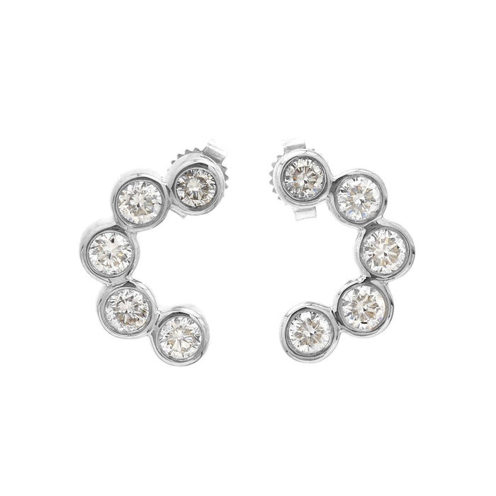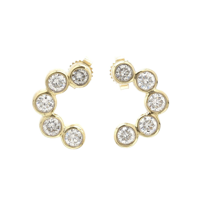 A subtle addition to her jewelry wardrobe, these dazzling 1.00 carat total weight lab grown diamond earrings are a sweet touch of sparkle. Crafted in 14K yellow or white gold, each lab diamond lined earring curves in a bezel setting. The brilliant round cut lab grown diamonds have a F-G color and VS-SI clarity for a radiant brilliance and geometric shape that complements any outfit.