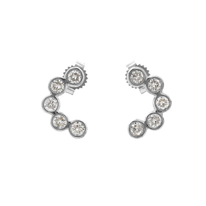 A subtle addition to her jewelry wardrobe, these dazzling 1/2 carat total weight lab grown diamond earrings are a sweet touch of sparkle. Crafted in 14K yellow or white gold, each lab diamond lined earring curves in a bezel setting. The brilliant round cut lab grown diamonds have a F-G color and VS-SI clarity for a radiant brilliance and geometric shape that complements any outfit.