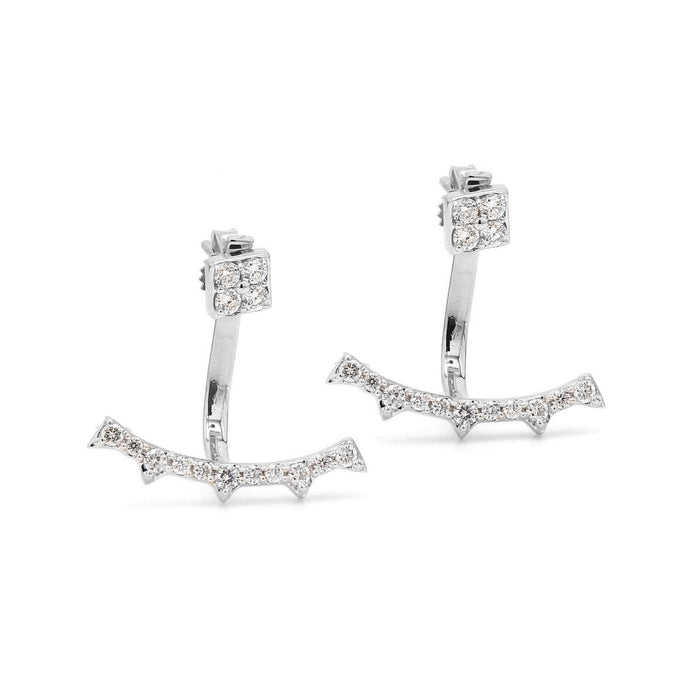 This fashion square frame stud earrings with drop jackets set are an appealing everyday style she’ll want to pair with most anything. Crafted in 14k gold, each lab diamond composite stud can be worn separate or finished with the alternate look of a fanned lab diamond line drop jacket for a combined total weight of 1/2 carats. The jacket can fit other post style earrings as well, making they versatile for your wardrobe. Buffed to a brilliant luster, these earrings secure comfortably with friction backs.