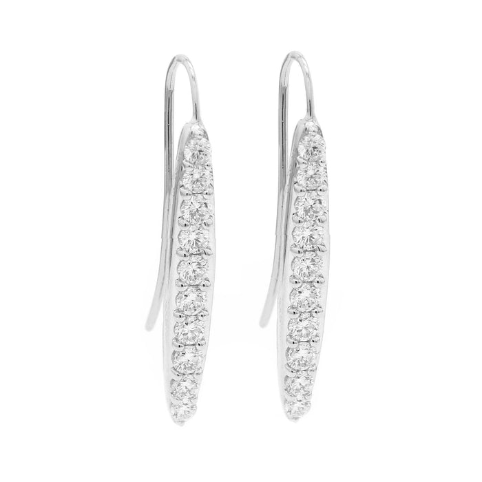 Simply stunning, these lab grown diamond drop earrings elevate her dressy attire. Created in 14K gold, each chic linear earring features a row of F-G, VS-SI prong set lab diamonds for a 1 1/2 carat total weight. Buffed to a brilliant luster, these earrings hang nicely on French wires.