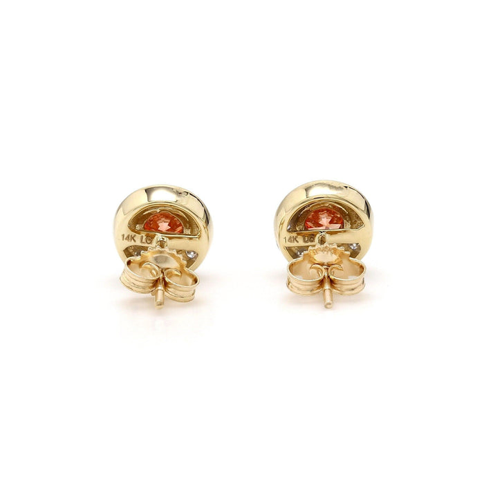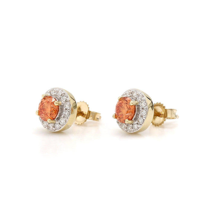 Make a wonderful impression with these beautiful halo stud earrings. Crafted in 14K gold, each breathtaking earring features lustrous orange center lab grown diamond for a 3/4 carat total weight combined, wrapped in a frame of shimmering petite lab-created F-G, VS-SI diamonds with a total weight of 1/4 carats. Polished to a bright shine, these post earrings secure comfortably with friction backs.