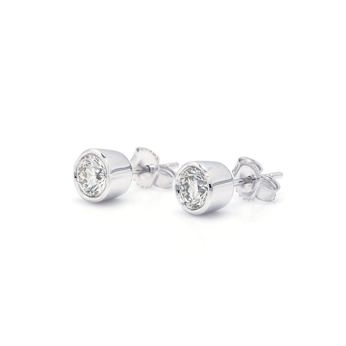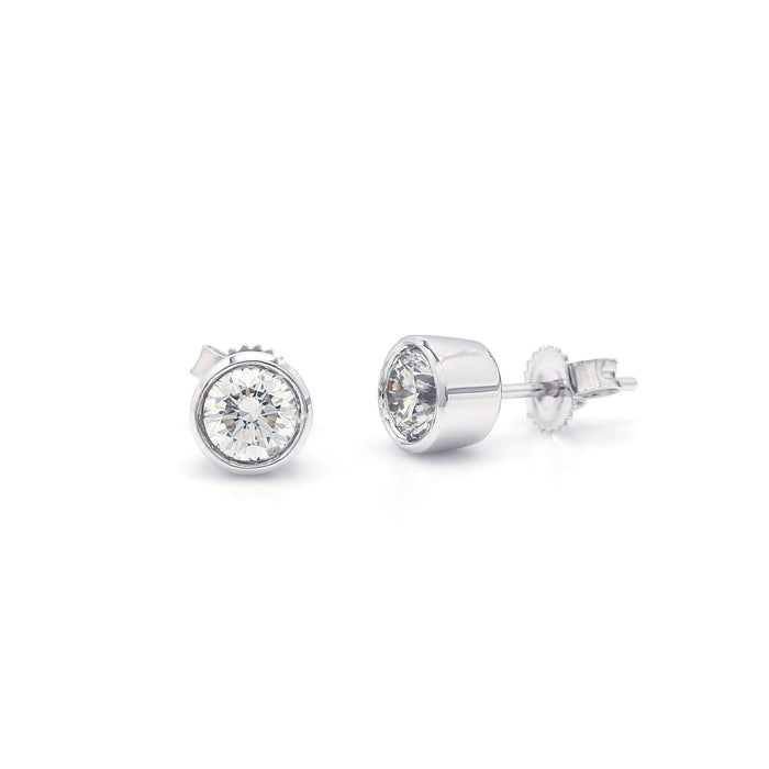 Make a wonderful impression with this beautiful bezel set stud earrings. Crafted in 14K gold, each breathtaking earring features lustrous I-J, VS-SI center lab grown diamond for a 3/4 carat total weight combined, polished to a bright shine, these post earrings secure comfortably with friction backs. These beautiful earrings can stand alone or have an earring jacket to dress them up, extremely versatile and fit into any wardrobe and complement any occasion.