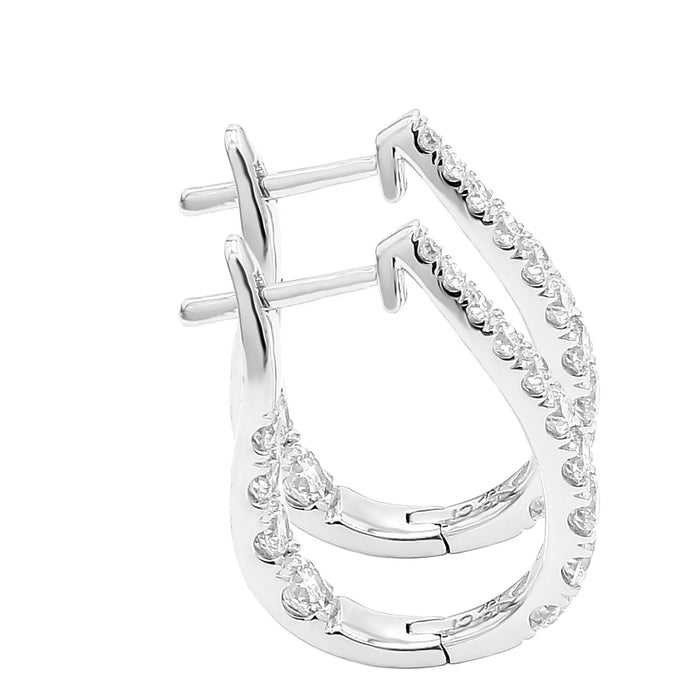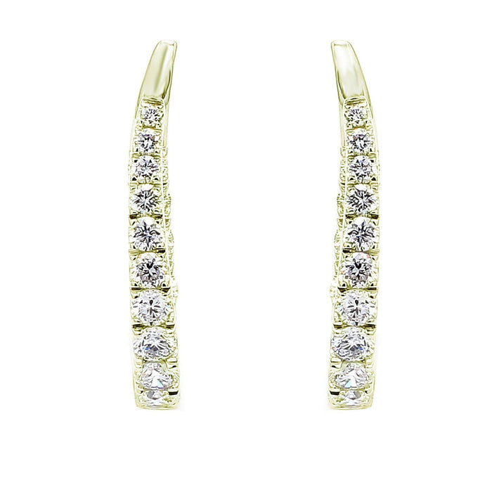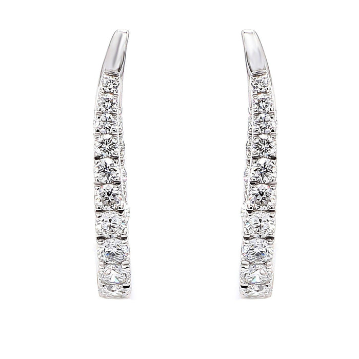 Turn heads with these alluring 2.00 carat total weight lab grown diamond journey hoop earrings. Crafted in 14K gold, each prong set lab diamond have a F-G color and VS-SI clarity for a radiant brilliance that complements any outfit.