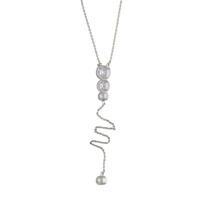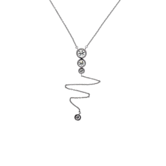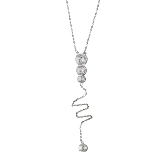 Sure to become a favorite, this shimmering drop fashion necklace is a delightful touch to any attire. Crafted in 14K gold, this lariat necklace style features a three graduated diamond bezel pendant with a chain link drop to a dangling diamond, both with sparkling lab grown diamonds, for a 1.0 carat total weight. Buffed to a brilliant luster, this lariat style necklace suspends along a 16-inch chain and secures with a lobster clasp. The lab grown diamonds have a sparkling I-J coloring and VS-SI ranking.
