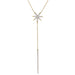 Sure to become a favorite, this shimmering starburst fashion necklace is a delightful touch to any attire. Crafted in 14K yellow gold, this lariat necklace style features an seven point starburst that chain link drops to a dangle, both with sparkling lab grown diamonds, for a 1/4 carat total weight. Buffed to a brilliant luster, this lariat style necklace suspends along an 16 inch chain with two 1 inch extensions and secures with a lobster clasp. The lab grown diamonds have a sparkling F-G coloring and VS-SI ranking.