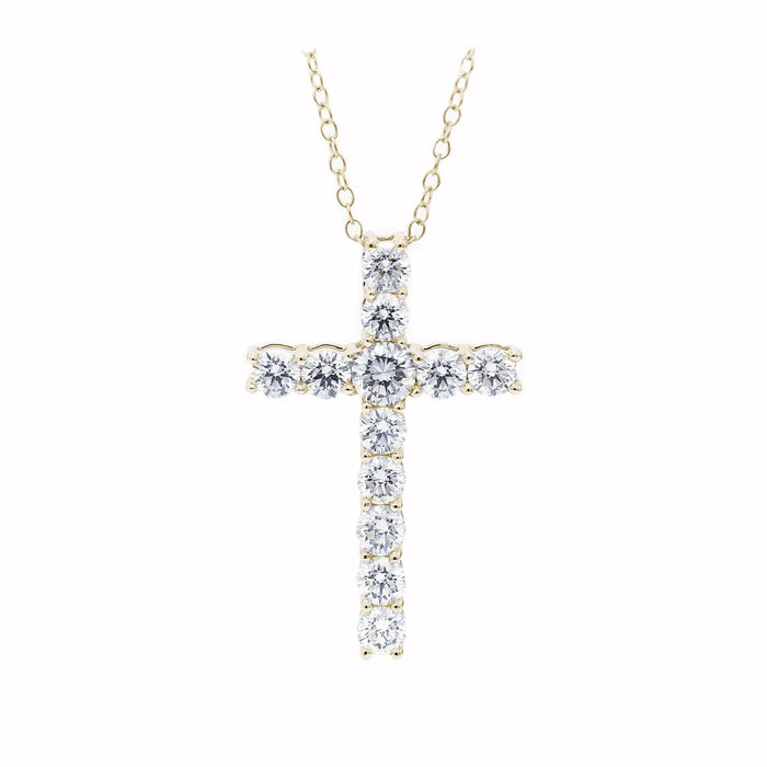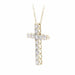 Simple yet striking, this diamond cross is fashioned in 14K gold, this traditional cross is completely outlined with a glistening array of shimmering diamonds. Radiant with 2.00 carat total weight of H-I, VS-SI diamonds and a bright polished shine, this cross suspends along a 16-inch chain that has a two-inch extension and secures with a lobster clasp.