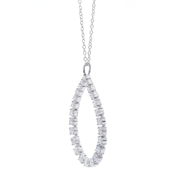 This tear drop pendant is a timeless fashion for around your neck. Crafted in 14K gold, this graceful and simple graduated design shimmers with 2.00 carat of lab grown diamond ranking in I-J, VS-SI. Polished to a bright shine, this pendant suspends along a 16 inch chain that has a two inch extension and secures with a lobster clasp.