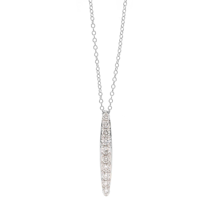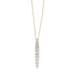 This trendy pendant is dainty in style but diverse in fashion. Crafted in 14K gold, this slender design shimmers with 3/4 carat of lab grown diamond. Polished to a bright shine, this pendant suspends along a 16 inch chain that has a two inch extension and secures with a lobster clasp.