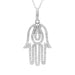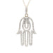 The Hamesh symbol is known to remind its wearer to use their five senses to praise God. Crafted in 14K gold, this graceful and simple design shimmers with 1 1/2 carat of lab grown diamond. Polished to a bright shine, this pendant suspends along a 16 inch chain that has a two inch extension and secures with a lobster clasp.