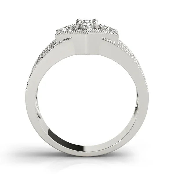 Elevate your style with our stunning ornate diamond ring. Adorned with 1/2 carat of brilliant lab diamonds, this masterpiece features elegant side scroll work and delicate milgrain outlining. Choose from gold or sterling silver for a luxurious touch. Available in F-G color and VS-SI clarity for a truly dazzling look.