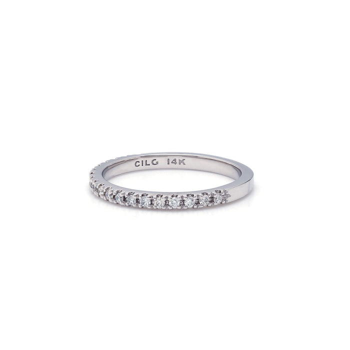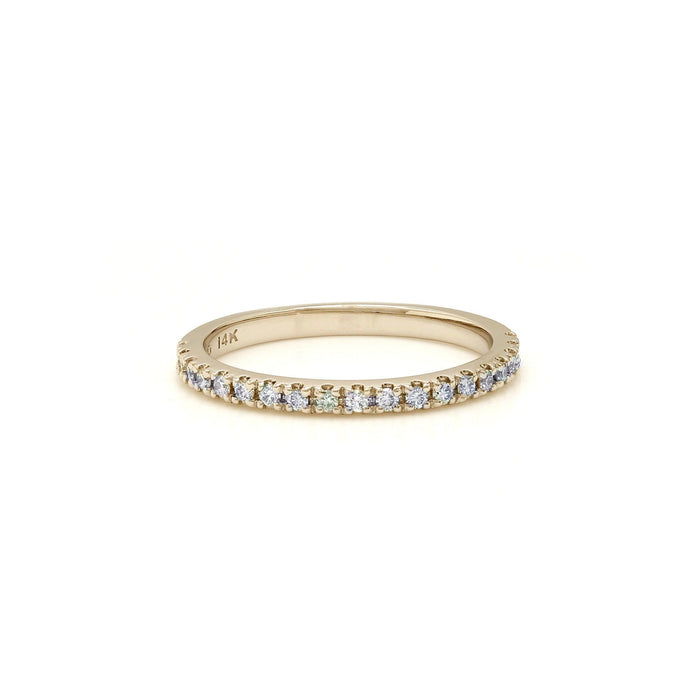This wedding band features a gold band accented with 1/5 carat total weight of lab grown diamonds.