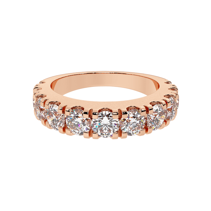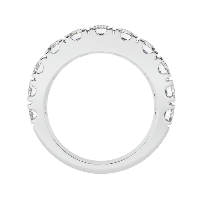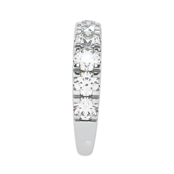 A brilliant celebration of your love, this lab grown diamond band is a memory in the making. Perfect for a wedding day, anniversary or "just because" band. A dazzling look that features a row of sparkling I-J, VS-SI lab grown diamonds totaling 2.0 carat. Its slender style can stack nicely on the side or both sides of an engagement ring. It can also be paired with other smooth sided rings for a personalized touch. Available in white or yellow 14K gold.