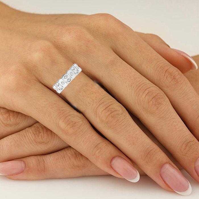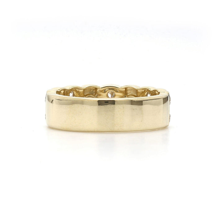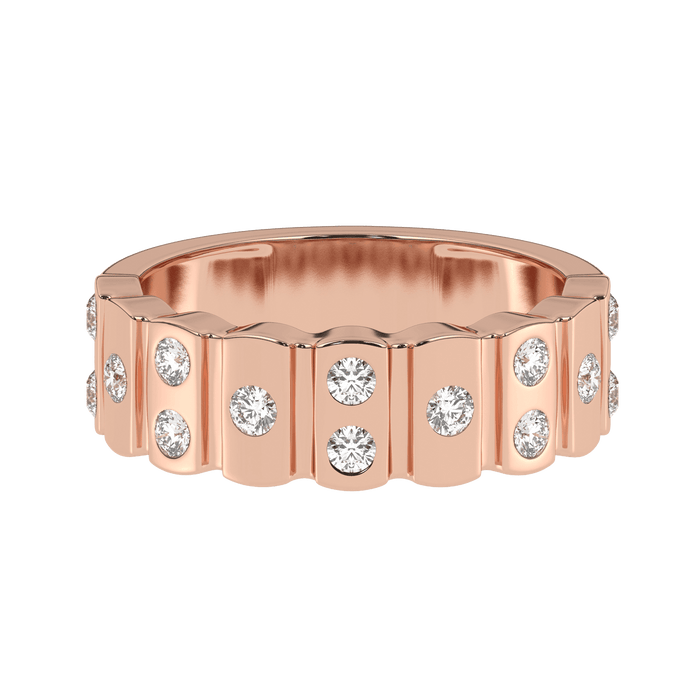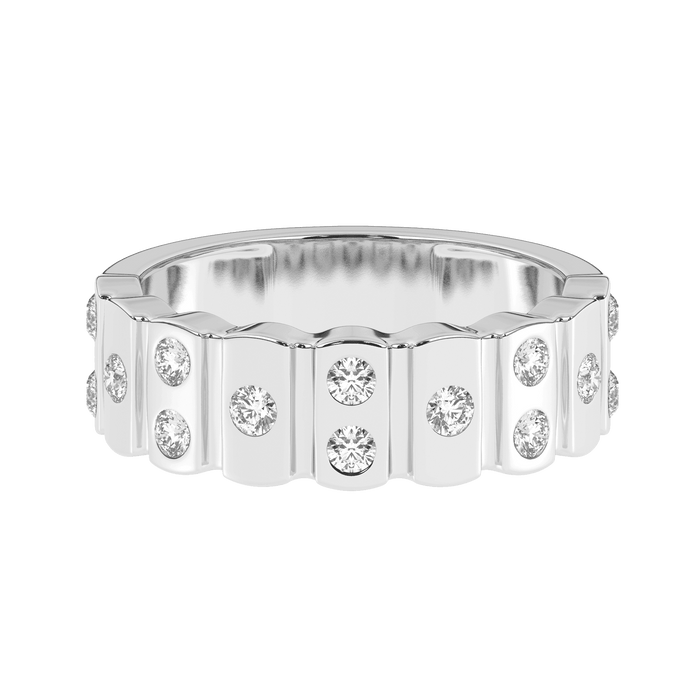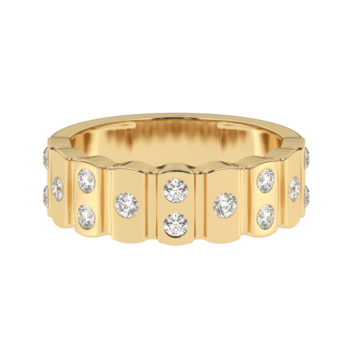Perfect for everyday wear, this fashion band adds a bright pop of sparkle to any attire. Crafted in fine 14K gold, this stylish ring features a clever alternating design set with shimmering round lab grown diamonds. A look that features a 1/2 carat total weight of sparkling lab created diamonds with a color ranking of F-G with VS-SI clarity.