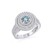Dazzling unique and colorful blue and white lab grown diamond ring. Crafted in 14K white gold, this triple halo has a blue color lab diamond wrapped in three frames of shimmering F-G VS-SI white lab diamonds that also flow down the shank. Radiant with 1 3/4 carat total weight of lab grown diamonds and a brilliant, buffed luster.