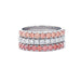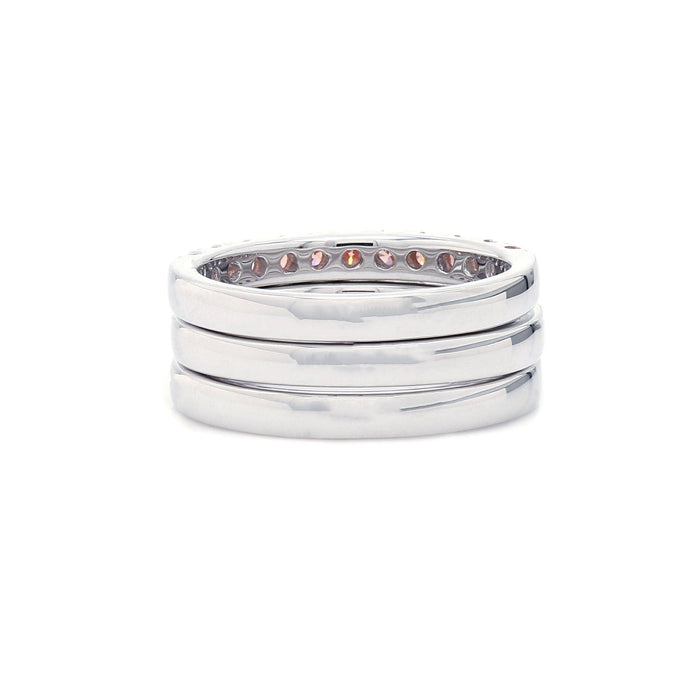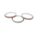Three stackable style bands! Fashioned in 14K white gold, this set of three stackable bands features one each in white, pink and orange colored lab grown diamonds. Each band is set with a glistening row of shimmering lab diamonds, for a 1 1/2 carat total weight of colorful appeal. Radiant with 1/2 carat total weight of lab diamonds, this set of three stack rings is finished with a bright polished shine.