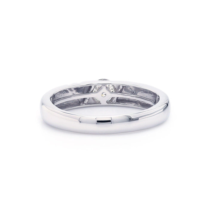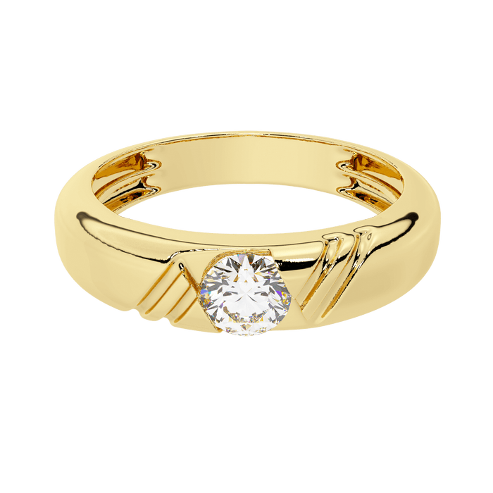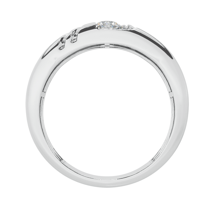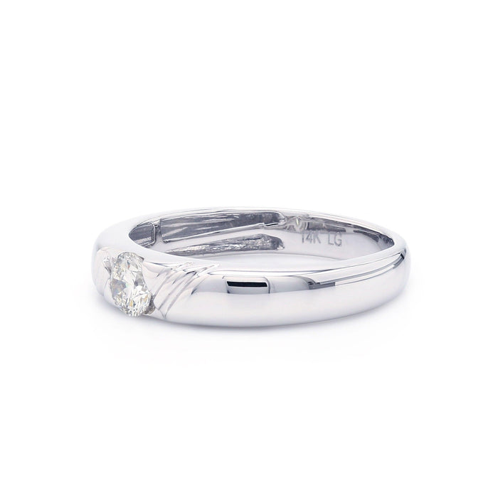 Perfect for a wedding day, anniversary or "just because" solitaire band. A simple look that features a single round lab grown diamond totaling 1/2 carat with I-J color and VS-SI clarity. The half channel set solitaire give it just the right light refraction, while the 2.5mm height* and 4.8mm width* provide a simple comfortable fit.