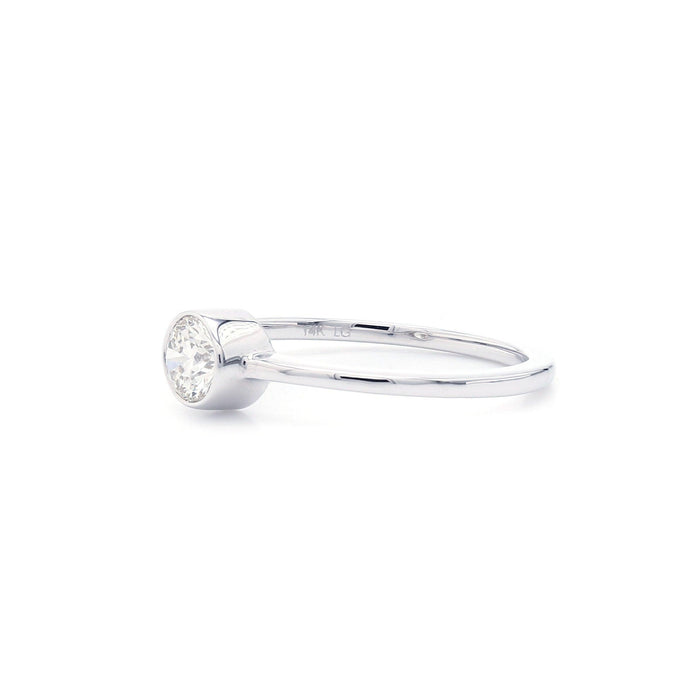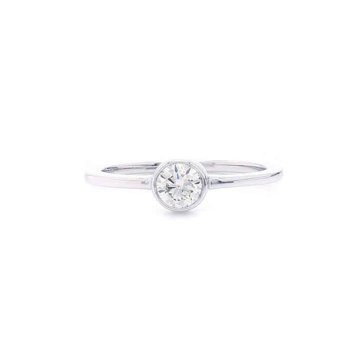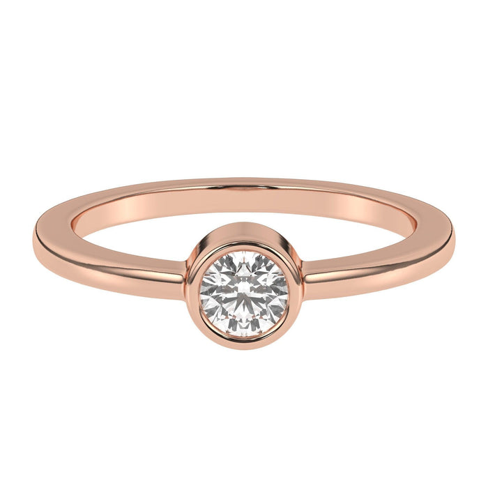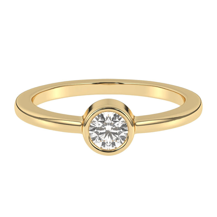 Make any moment special with this charming bezel set solitaire lab diamond ring. Created in warm 14K gold, this playful design sparkles with bezel-set I-J, VS-SI lab grown diamond. Glittering with a 3/8 carat lab diamond and a brilliant, buffed luster, this delightful look is certain to be treasured. Perfect addition to your stack ring collection, as a promise or "just because" ring.